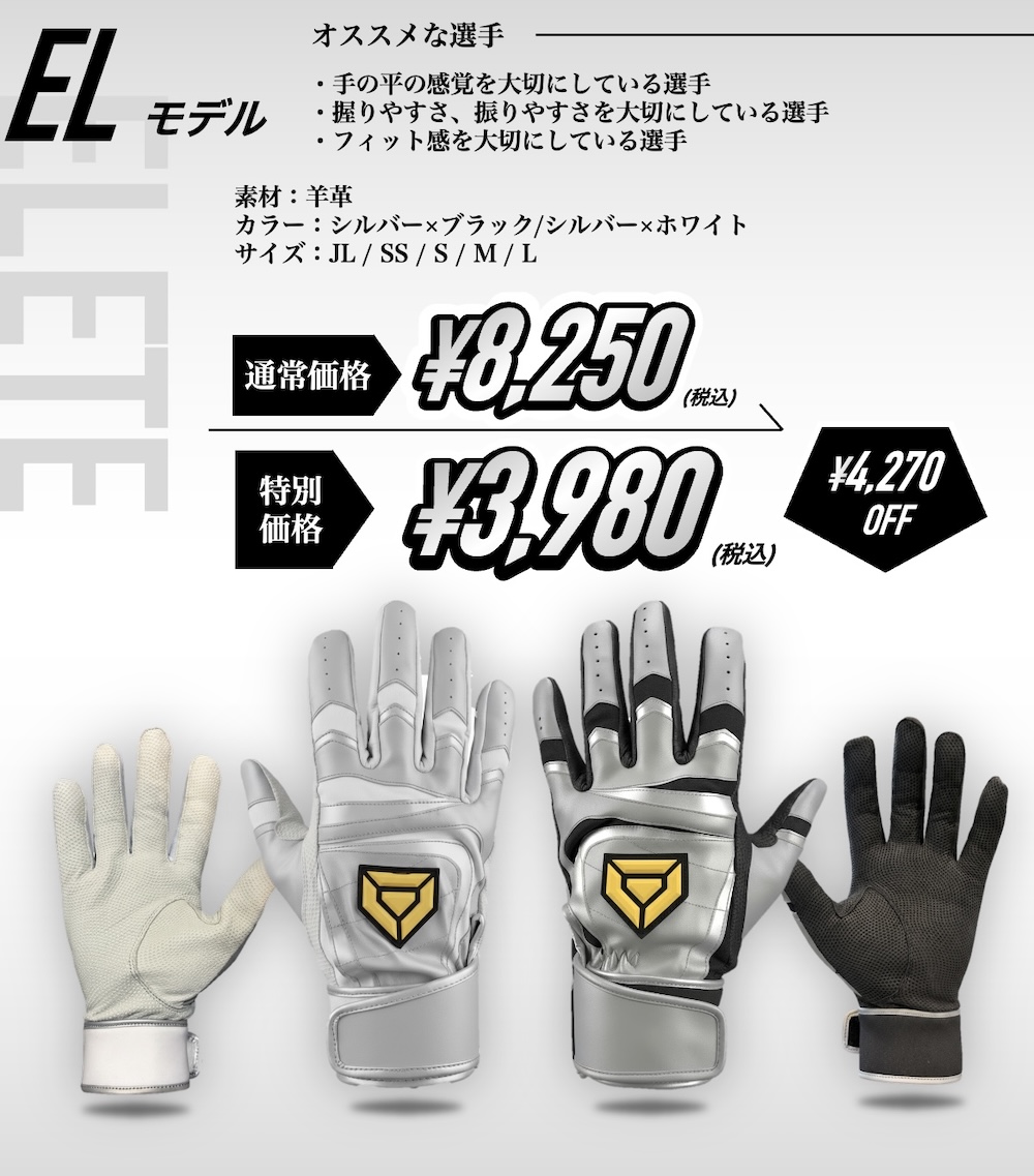 ぜひ、BASEBALLのバッティング手袋を