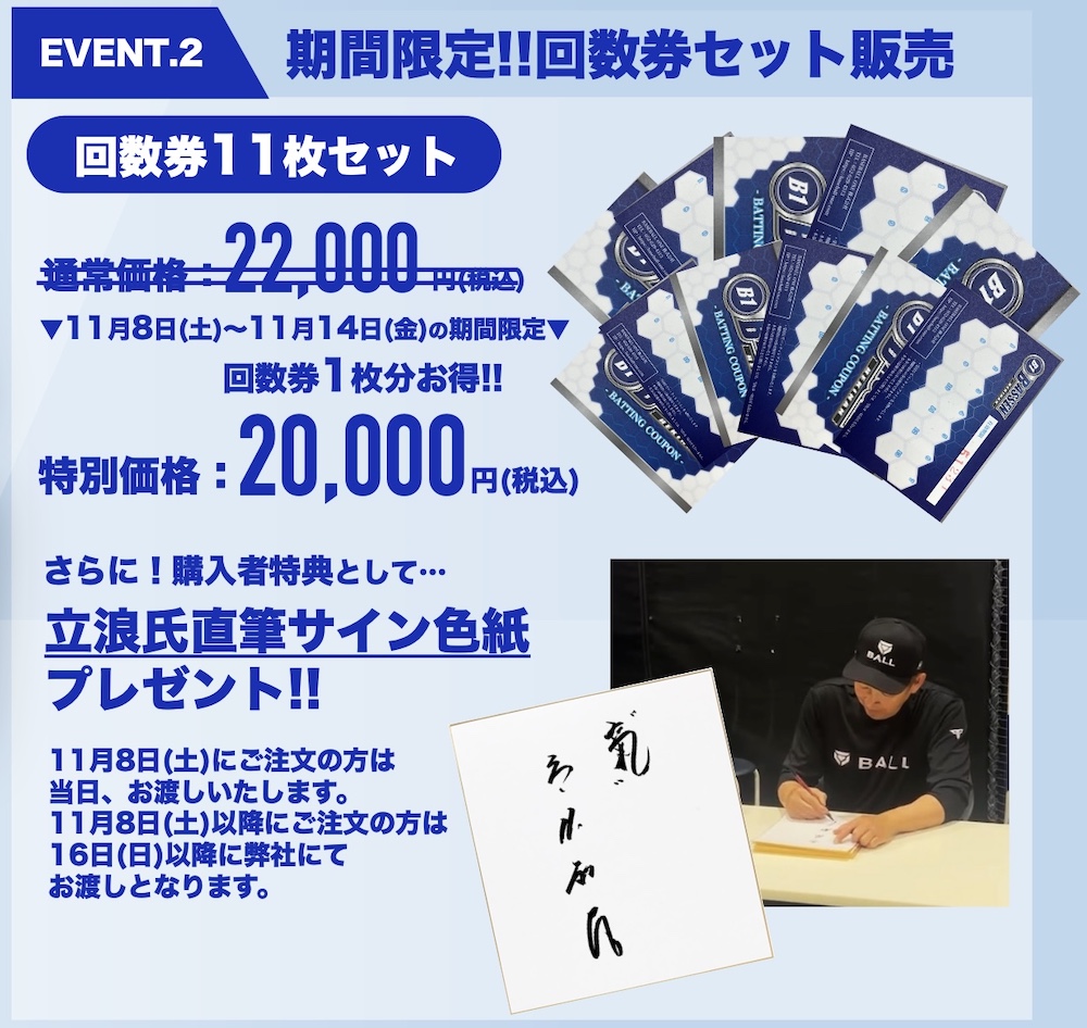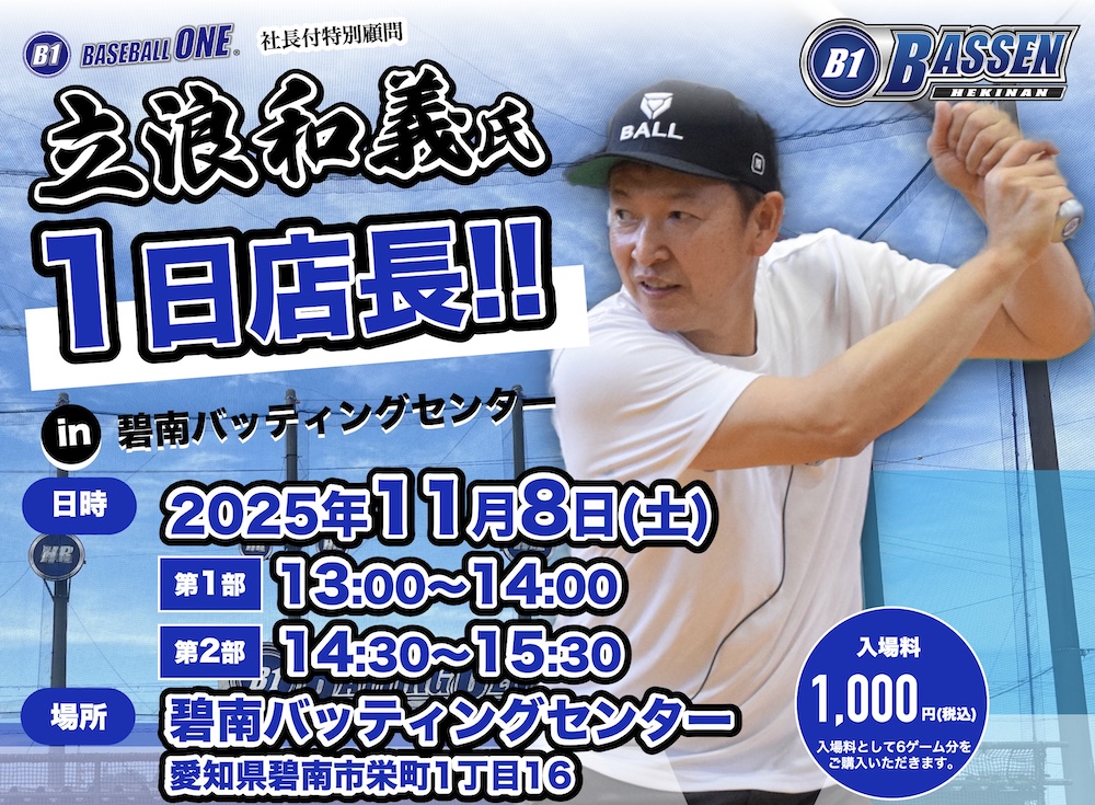 11月8日 碧南バッティングセンター 立浪和義氏 1日店長イベント 事前予約フォーム
